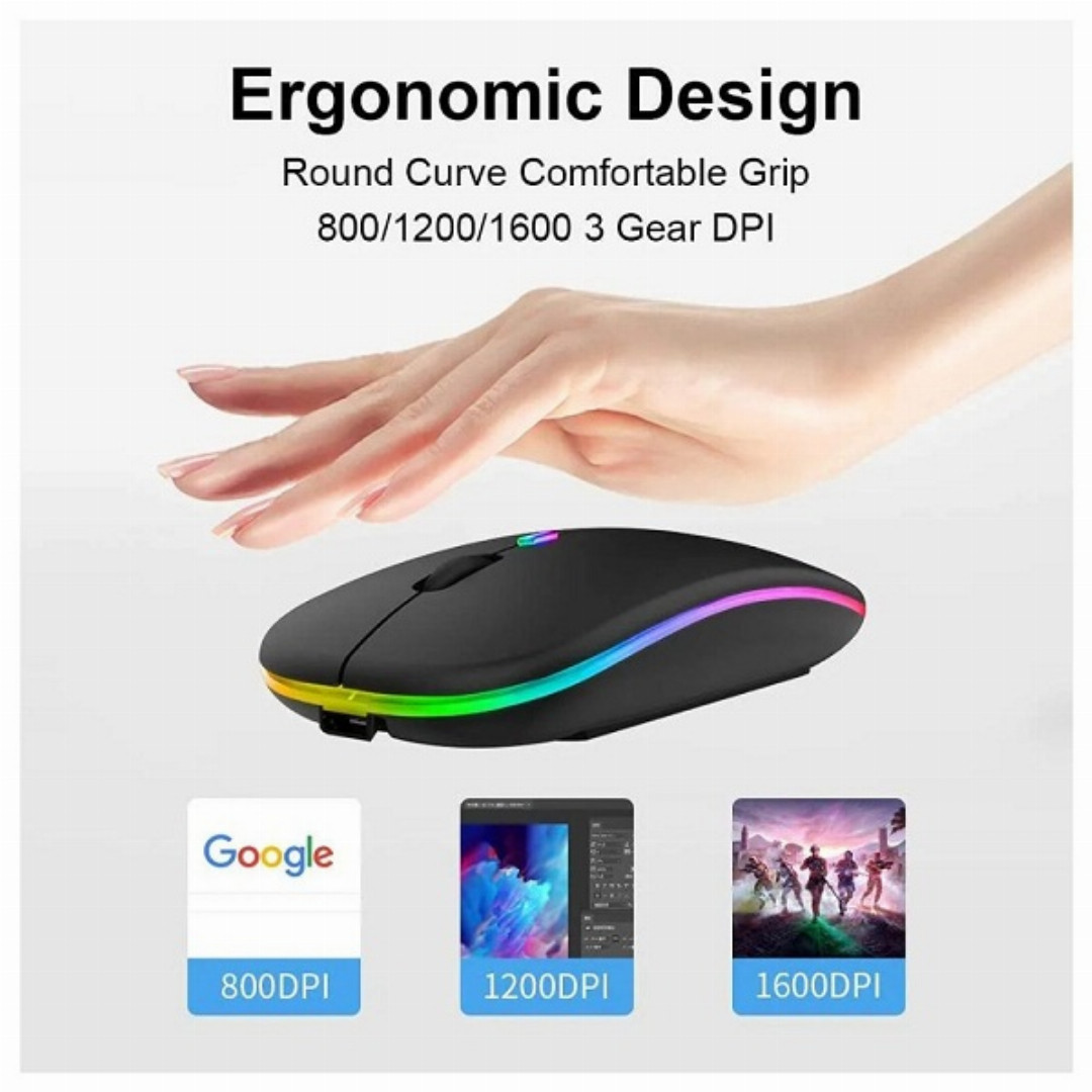 - The slim and portable design makes the mouse can be used anywhere, a great travel mouse with colorful LED backlight auto-change with a breathing light effect.